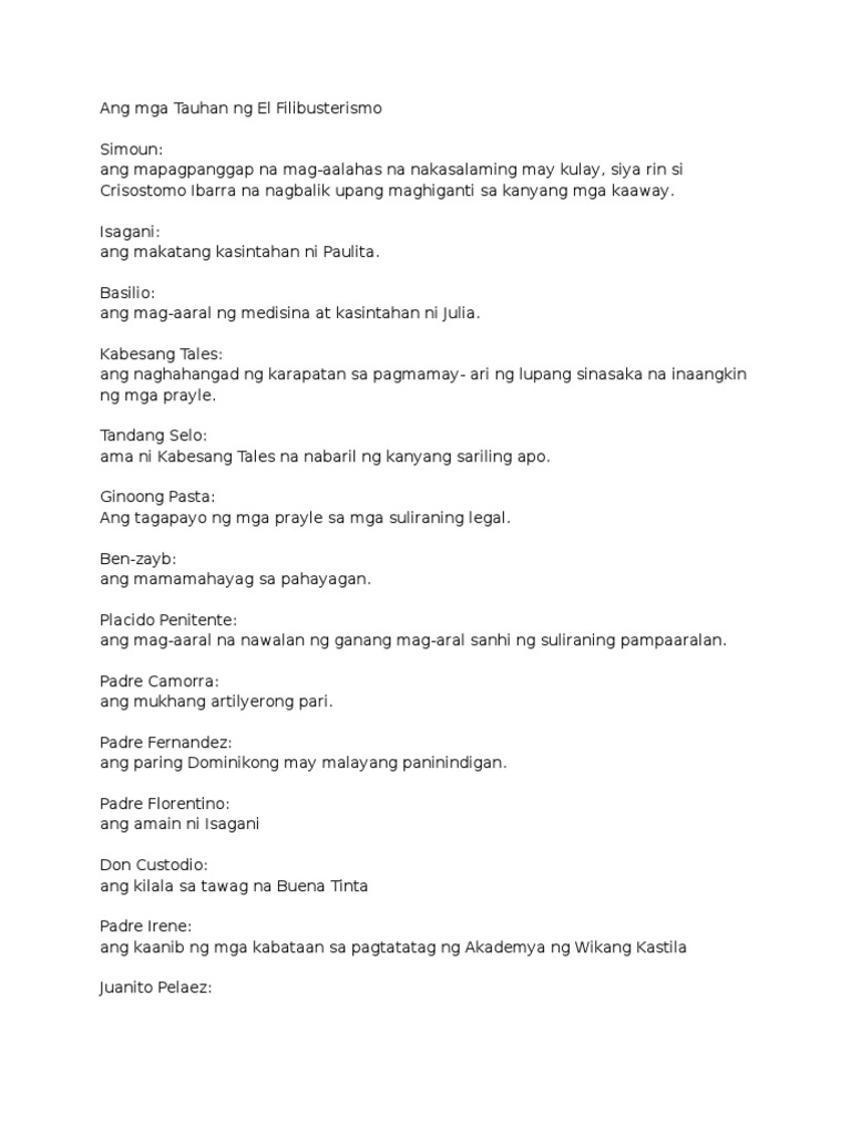 Ang Mga Tauhan Ng El Filibusterismo Pdf