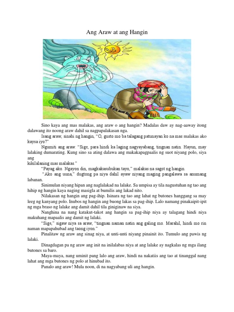Ang Araw At Ang Hangin Maikling Kwento Aral Pinoy Collection
