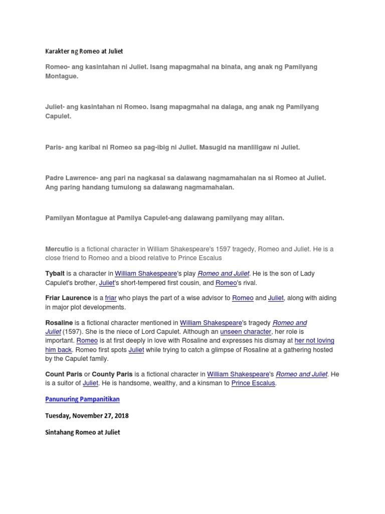 Karakter Ng Romeo At Juliet Pdf