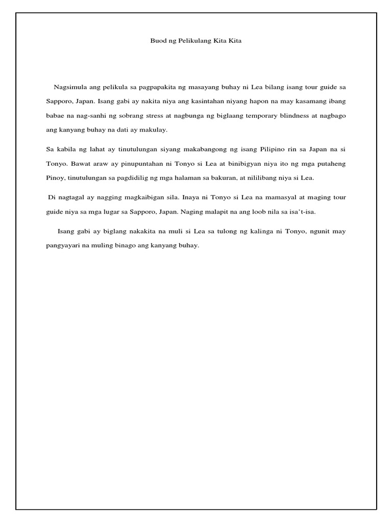 Buod Ng Pelikulang Kita Kita Pdf Pdf