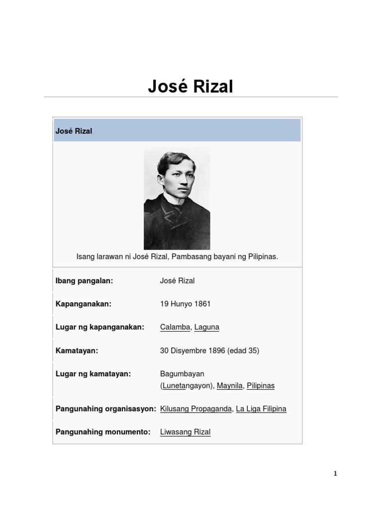José Protacio Rizal Mercado y Alonzo Realonda 19 Hunyo 1861 30 Disyembre 1896 ay isang Pilipinong bayani at isa sa pinakatanyag na tagapagtaguyod ng pagbabago sa Pilipinas noong. Ililimita sa mga anyo ng tula maikling kuwento nobela at pelikula ang pagtatala ayon sa bigat ng impluwensiya at impact sa masang manonood. Matatandaang siya ay nakulong dahil sa tapang nya sa paglaban sa mga Prayle at Gobyernong Kastila.