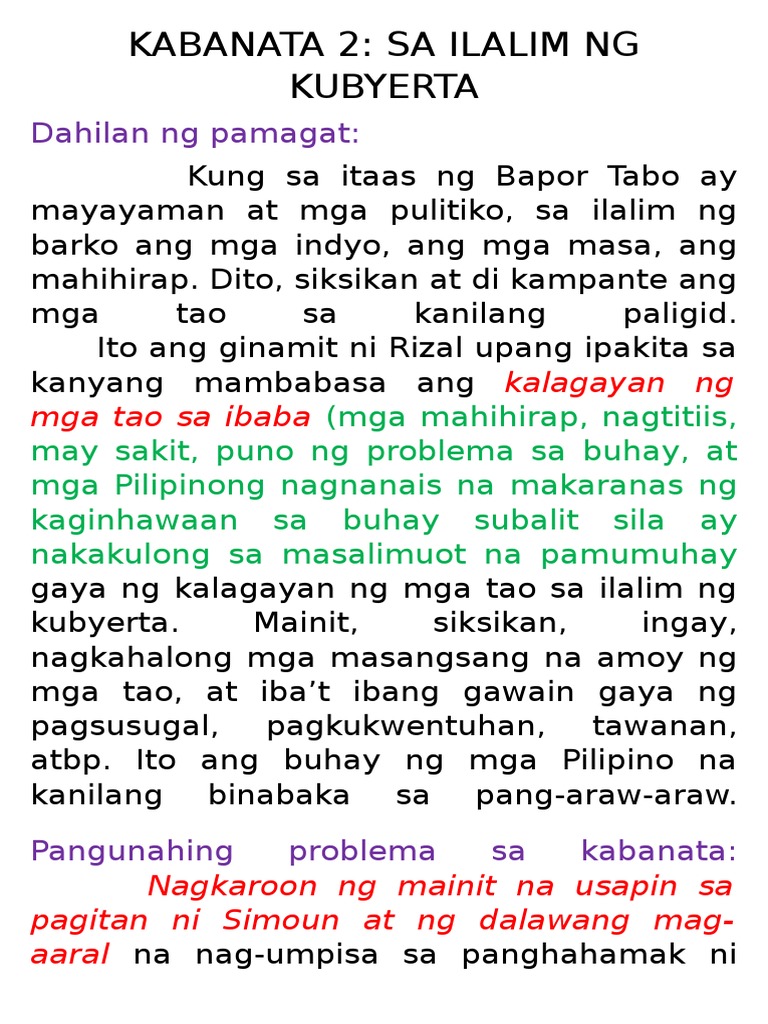 Masyadong masikip ang ilalim ng kubyerta dahil sa mga ibat ibang bagahe at pasaherong mahihirap. Pages in category mga tauhan ng el filibusterismo. KABANATA 1 SA ITAAS NG KUBYERTA.